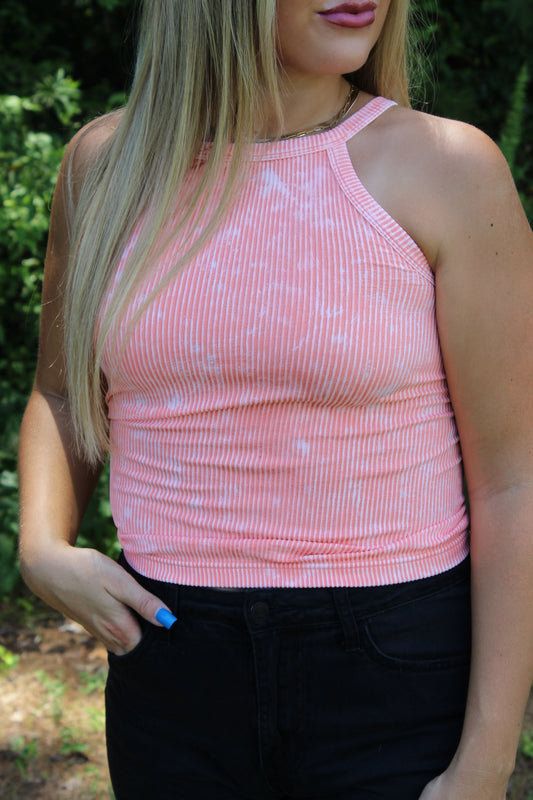 Coral Stone Washed Ribbed Cami Top