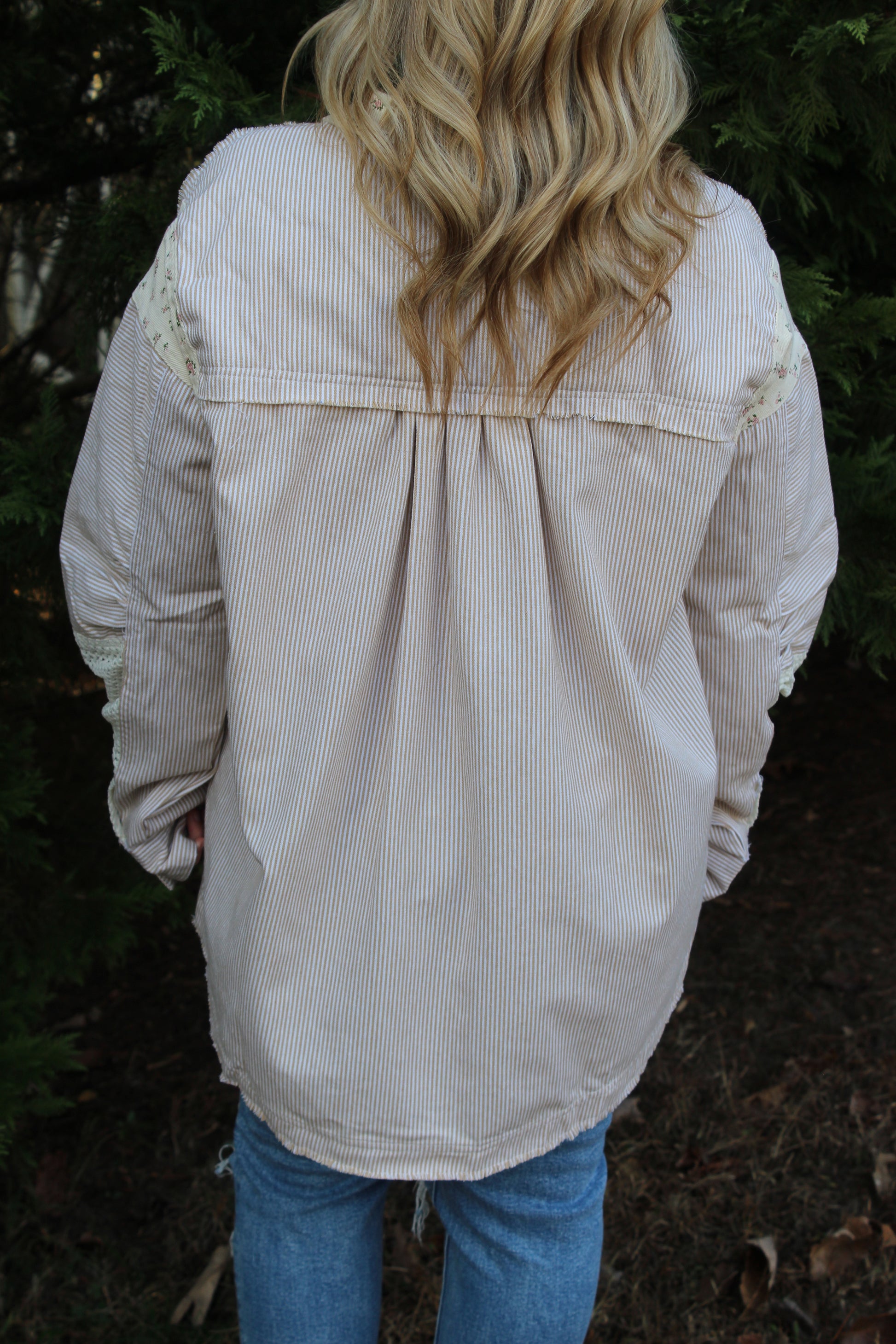 Discover the exquisite beauty of the Fall Muse Floral Shacket. With its intricate details, such as pockets, a collared neck, and floral accents, this lAce material shacket is a must-have for any fashion enthusiast. This shacket is a MUST.