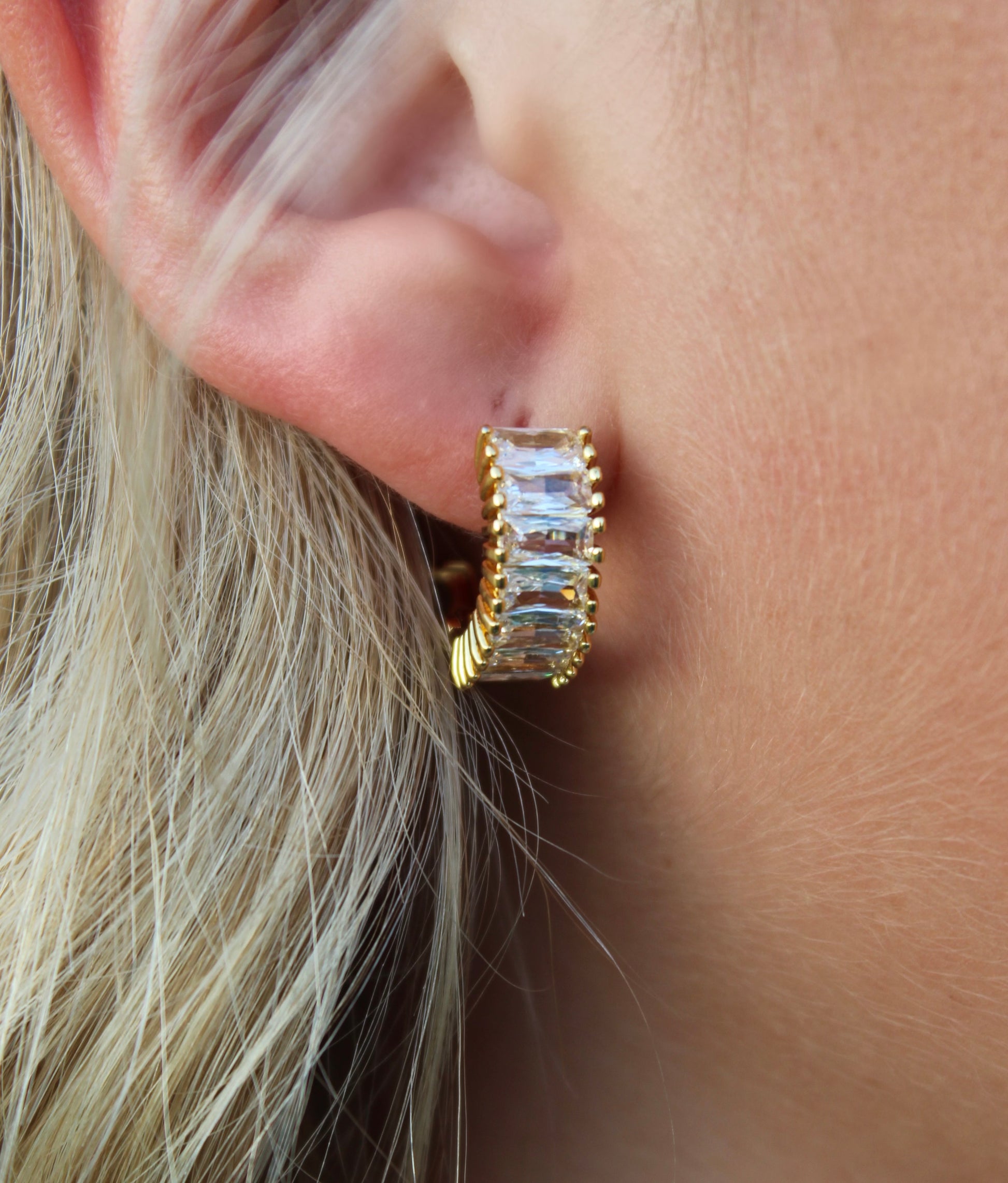 Huggie Earrings W/ Rectangular CZ